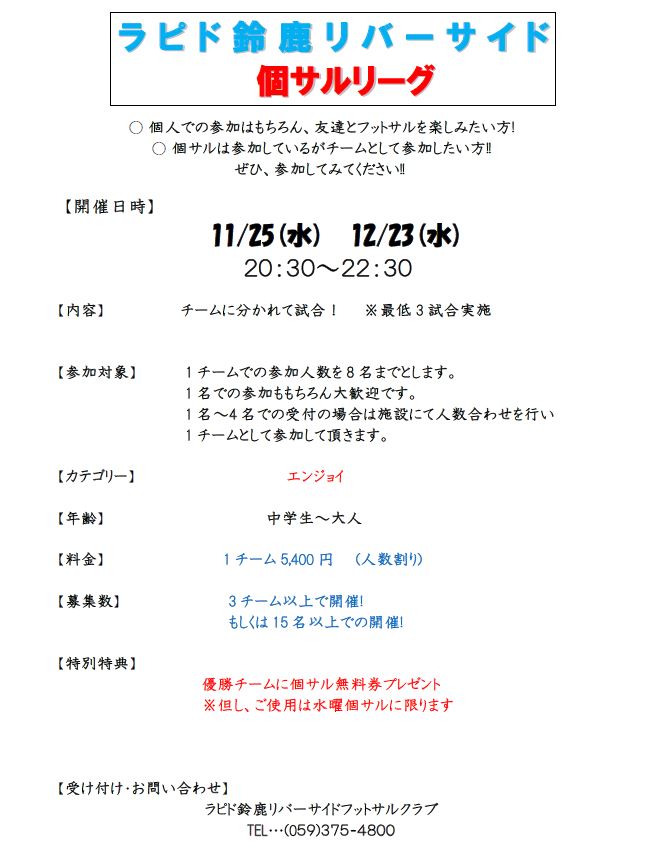 Copyright © ラピド鈴鹿リバーサイドフットサルクラブ : All rights reserved